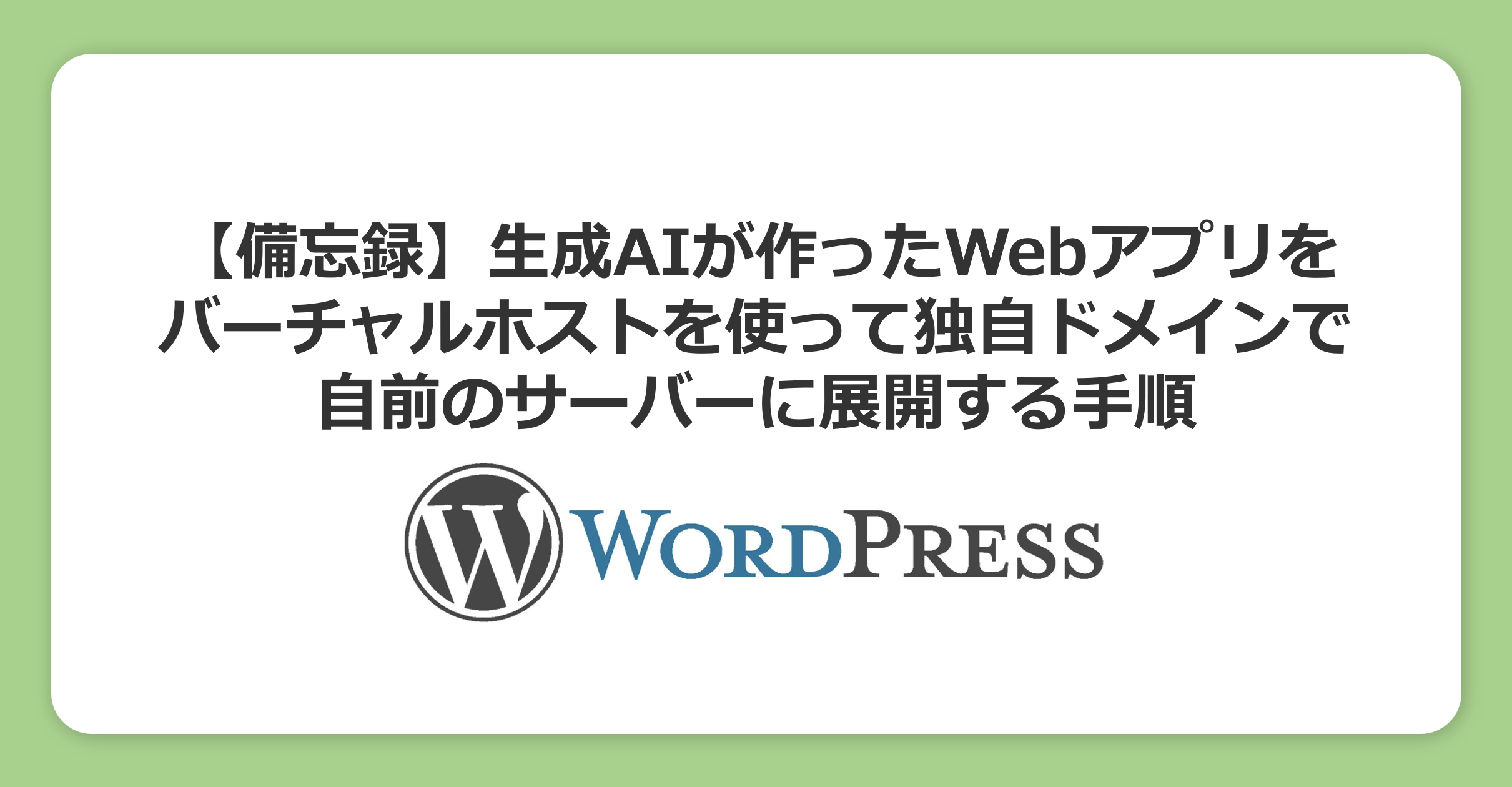 一方で、いろいろな理由で自分のサーバーに置いておきたいという場合、既存のサーバーに対してバーチャルホストを設定し、AIが作ったPHPなどのファイルを置くことで、すぐに使えるようにできます。